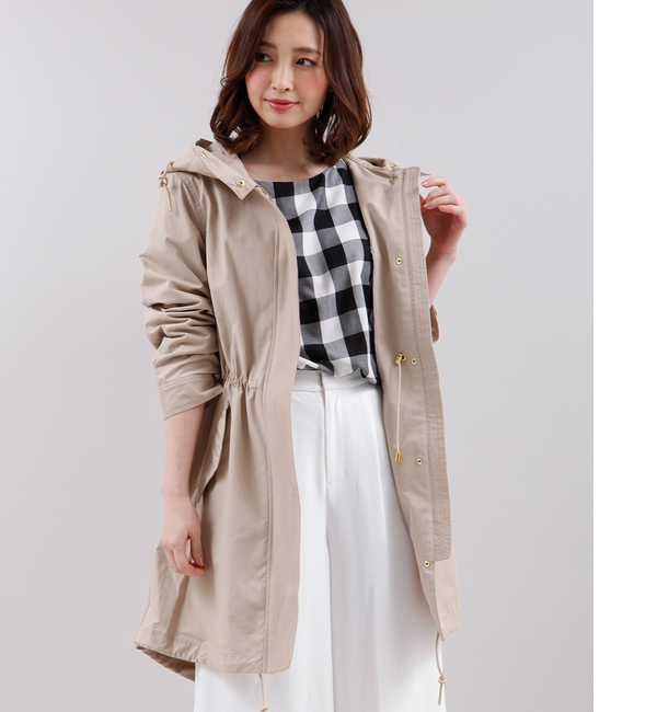 【送料無料】 ほどよく光沢をおさえたモッズコートです。ウエスト内側にドローストリングコードが入っているので、ウエストを絞って変化をつけることができます。もたつきの少ない薄めの仕上がりと軽量デザインはこれからの時期にピッタリ。ナイロンを混ぜることで通常の綿より軽くシワになりにくくなっています。・裏地なし【サイズ2】着丈:60cm マルシェ ド クリアインプレッション/MARCHE de CLEAR IMPRESSION CLEAR IMPRESSION|アウター|ミリタリー・モッズコート