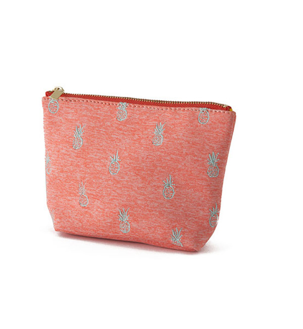 【3000円(税込)以上で送料無料】 夏らしさを感じられる!楽しいトロピカルポーチです。今季もトロピカルモチーフがトレンド。形の面白いパイナップルが大注目されています。ひとつひとつのパイナップルの形を微妙に変えることで、子供っぽくならず、抜け感を表現したデザインが魅力的です。また素材はピンクとブルーは帆布を使用し、ミントとオレンジはスウェットを使用しています。スウェットは、帆布に比べて色がはっきりでるのでより楽しい夏の色彩鮮やかな雰囲気が出るのでオススメです!マチもあるので、しっかりと収納もできます。 ヒッチハイク/HITCH HIKE 小物|ポーチ