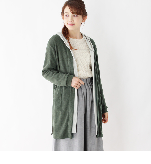 フードレイヤードカーディガン