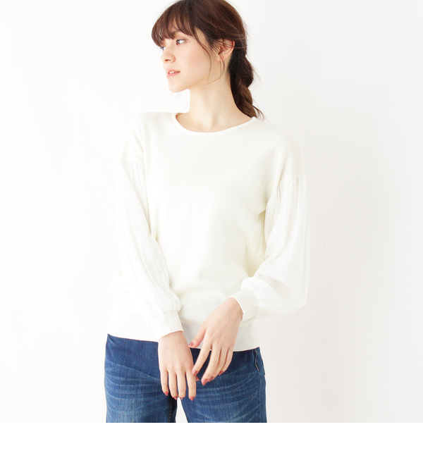 お袖ストライプチュールニット