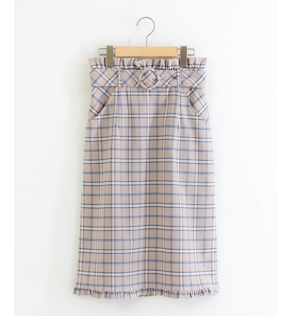 【送料無料】 ちょっぴりレディなIラインシルエットに、フリルが可愛らしさを加えるチェック柄スカート。裏地付きでごわつかずに着用でき、同素材のベルトで高め位置にウエストマークすることで脚長スタイルに♪フェミニンスタイルはもちろん、あえてキャップやスニーカーなどを合わせて外したスタイリングもおすすめです◎*摩擦や水濡れによる色落ち・色移りにご注意下さい。 マジェスティックレゴン/MAJESTIC LEGON スカート|スカート
