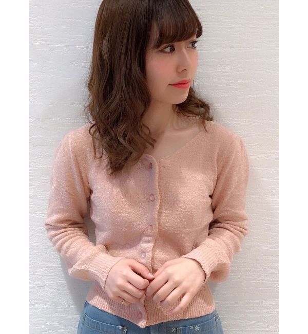 【送料無料】 肌触りの良い素材感とVネックのあきがポイントのニットカーディガン。ボタンを後ろにして着用しても可愛いです。プリントと無地と両方のカラーを展開しているので幅広いコーディネイトに使えます。 ダズリン/dazzlin トップス|カーディガン