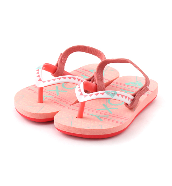 【3000円(税込)以上で送料無料】 肌当たりのソフトなゴム製バックストラップをプラスしたビーチサンダルです。着用時も脱いだときも可愛いポップなプリントデザインに注目。柄入りのトングには「ROXY」のロゴマークがあしらわれています。複数のバリエーションからお気に入りの柄をチョイスして。 サンアイミズギラクエン/三愛水着楽園 シューズ|サンダル