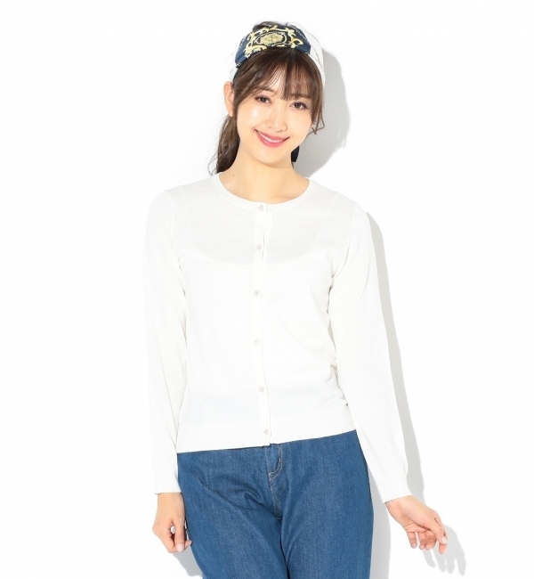 【送料無料】 アクリルコットンの定番カーディガンです!■デザイン衿柄入りのカーディガンです。華奢なお花釦で大人フェミニンなデザイン。クルーネックなので、どんなコーディネートにもおすすめです。■素材細い番手を3本よったアクリルコットンを使用しました。UVケアつきのアイテムで、高クオリティでプライスレスなお得なニットです。※手洗い可※商品画像はサンプルを使用しているため、色味やサイズ等の仕様に変更がある場合がございますので、予めご了承ください。カンボジア※生産の都合により素材・原産国が変更になる場合がございます。 エニィスィス/any SiS any SiS|トップス|カーディガン