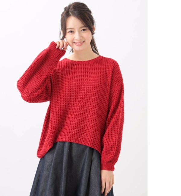 ワッフル柄ボリュームスリーブニットプルオーバー