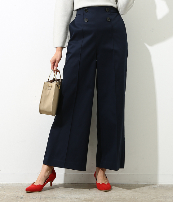 【送料無料】 微光沢のあるチノコットンを使用したキレイめワイド。程よく広がる美しいシルエットも相まってエレガントさが漂う1本です。センタープレス替わりにあしらったピンタックがシャープな印象を与え、スラリとした美脚スタイルを演出してくれます。フロントに大きめのゴールドボタンをあしらってマリンテイストに仕上げた可愛らしいデザインも魅力。サイドのコンシールファスナーで脱ぎはきもラクにできます。トップスは裾インで合わせるとスッキリ感が高く、ボーダー柄なら海を感じる爽やか系スタイリングが完成。ROPE'の商品は、ROPE'実店舗のみの取り扱いになります。 また、ROPE' mademoiselle の商品は、ROPE' mademoiselle実店舗のみの取り扱いになります。洗濯又はクリーニングの際は、たたんでネットを使用してく下さい。洗濯の際、多少色落ちしますので、単品でお洗い下さい。洗濯後は脱水してすぐに干して下さい。濡れたまま放置しますと色泣きや他の衣類などに色移りすることがあります。洗濯で多少縮みます。洗濯後は形を整えて干し、アイロン掛けして下さい。水洗い後の乾燥機のご使用は避け、自然乾燥して下さい。この製品は、摩擦(特に湿った状態での摩擦)や、汗や雨などで濡れた時は他の衣料や下着(特に白物)に色移りする場合がありますので、十分ご注意下さい。この製品は、強い日光(または照明)を長時間受けると変色する恐れがあります。ご着用及び保管の際は、ご注意下さい。また、汗に濡れたまま長時間日光を浴びたり、濡れたまま放置すると変色する恐れがあります。取扱いには十分注意して、ご着用ください。∞-∞-∞-∞-∞-∞-∞-∞-∞-∞-∞-∞-∞-∞-∞-∞-∞-∞-∞-∞-∞※サイズ表は、実物を採寸した実寸です。商品タグのサイズは、メーカー基準サイズとなりますので実寸とは異なります。∞-∞-∞-∞-∞-∞-∞-∞-∞-∞-∞-∞-∞-∞-∞-∞-∞-∞-∞-∞-∞ ロペ/ROPE ROPE|パンツ|その他