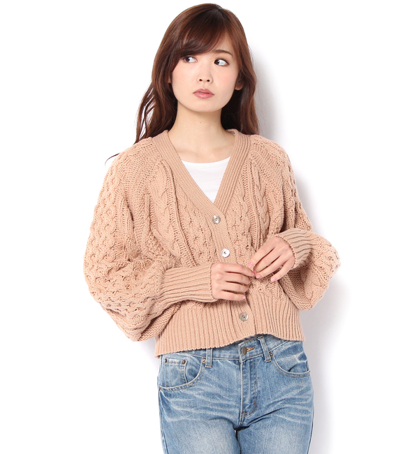 【送料無料】 ざっくりとしたケーブル編みのニュアンスが魅力のコットン混カーディガン。ふんわりとしたボリューム袖が印象的で、裾と袖口はリブ仕上げのためタイトに収まります。程よいショート丈なのでどんなボトムスとも好相性。さらっと羽織ってもさまになるアイテムです。 ガリャルダガランテ/GALLARDAGALANTE トップス|カーディガン
